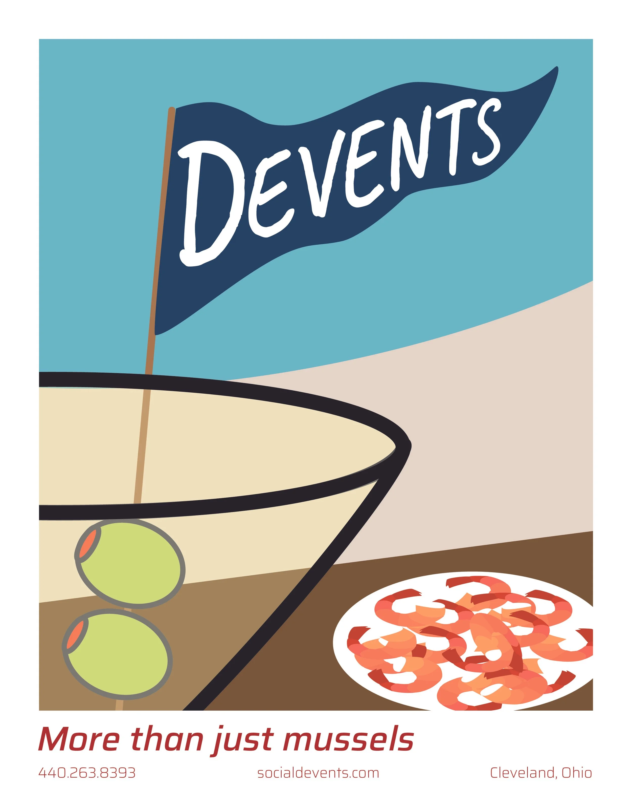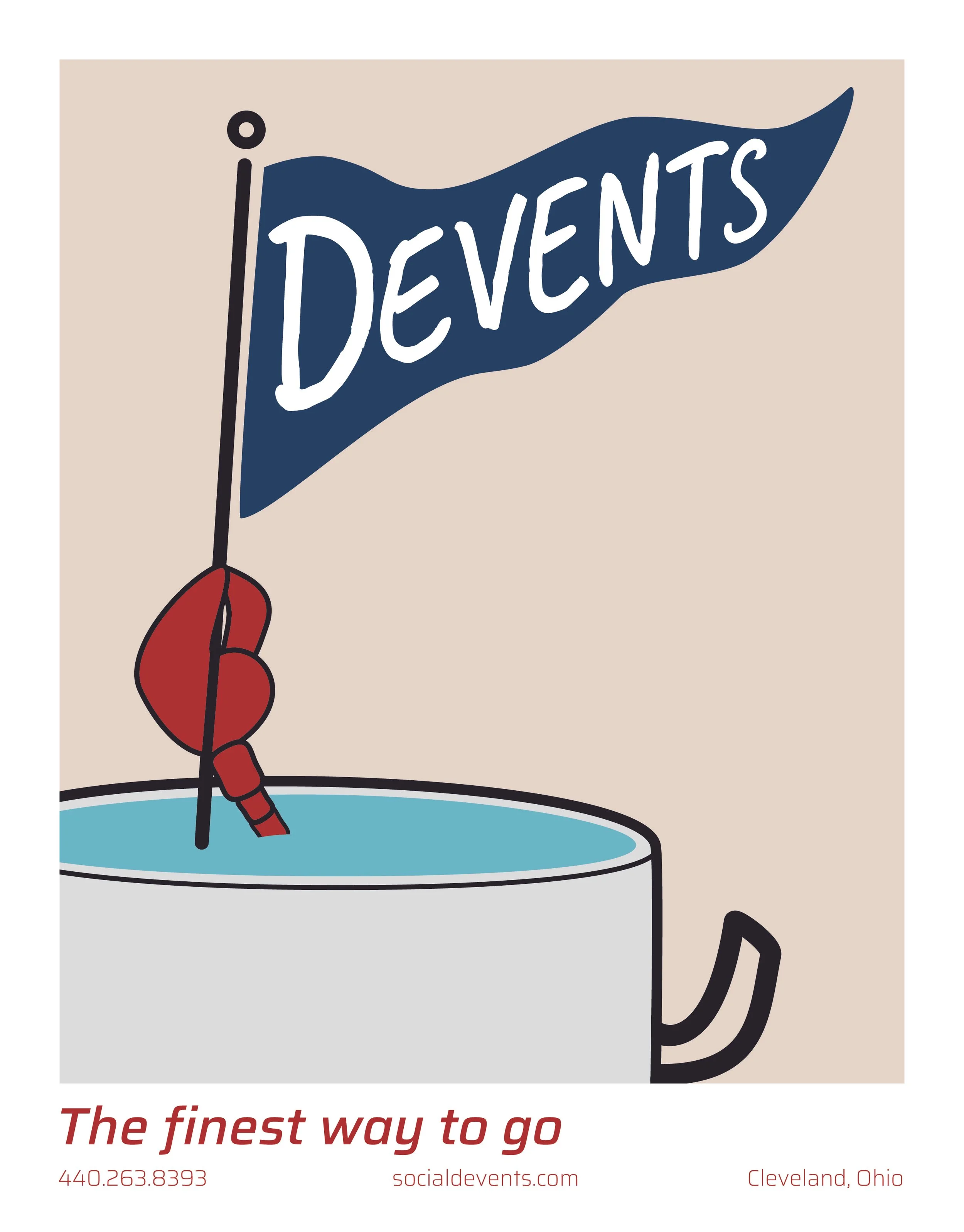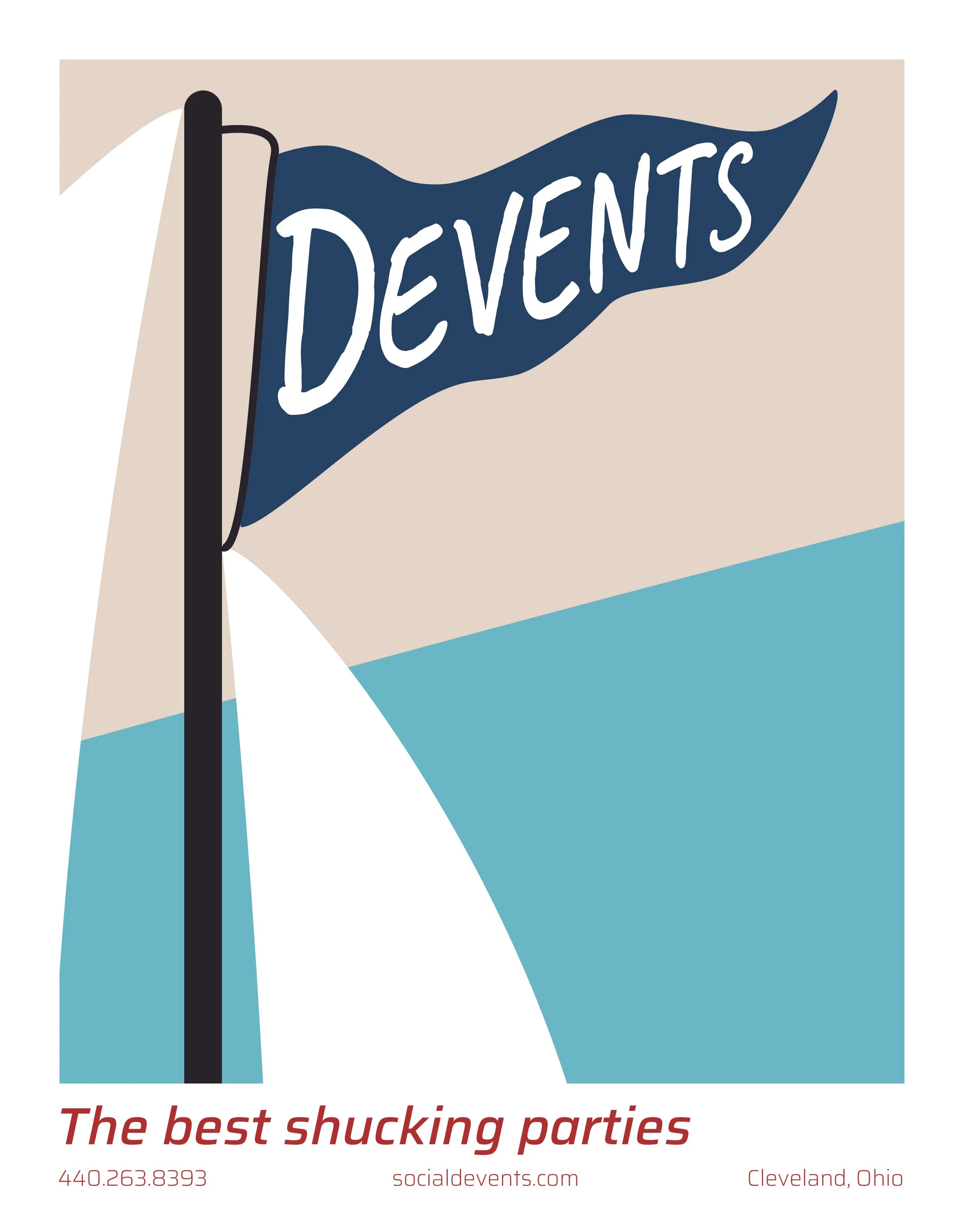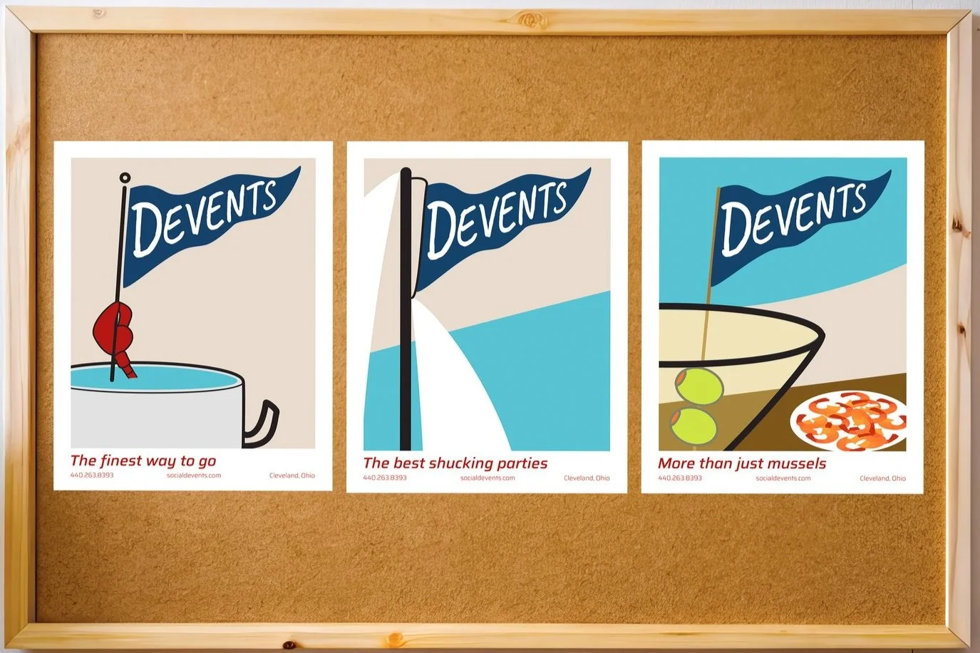 DEVENTS’ visual identity blends sporting and nautical influences, making it an ideal fit for the Cleveland market. At the heart of its branding is the pennant logo, a symbol that anchors the seafood-focused event catering business. The ad series reinforces this identity by maintaining the logo while creatively showcasing DEVENTS’ diverse offerings in a fun way that resonates with Clevelanders.